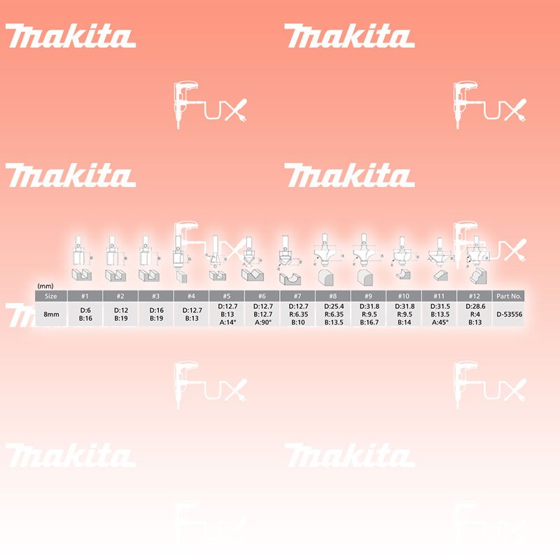 - #1 D:6 / B: 16 • #2 D:12 / B: 19 • #3 D:16 / B: 19 • #4 D:12,7 / B: 13 • #5 D:12,7 / B: 13 / A 14° • #6 D: 12,7 / A: 90° / B: 12,7 • #7 D: 12,7 / R : 6,35 / B: 10 • #8 D: 25,4 / R : 6,35 / B: 13,5 • #9 D: 31,8 / R: 9,5 / B: 16,7 • #10 D: 31,8 / R : 9,5 / B: 14 • #11 D: 31,5 / B: 13,5 / A : 45° • #12 D: 28,6 / B: 13 / R : 4