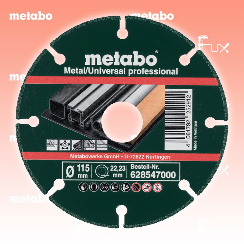 Das Ladenlokal bleibt vom 25. Dezember 2025 bis am 04. Januar 2026 geschlossen. Bestellungen und Lieferungen von Neugeräten werden trotz Ferienabwesenheit in gewohnter Fux-Manier entgegengenommen und ausgeliefert. Zu "Winkelschleifer Diamanttrennscheibe" von Metabo Metabo Diamanttrennscheibe 115 mm Bestell- und Artikelnummer: 628547000 Vakuum-gelötete Diamanttrennscheibe für nahezu alle Metallwerkstoffe; sehr flexibel einsetzbar auch in verschiedenen Materialien auf Grund des Vakuumlöt Verfahrens, wie z.B. Rohre, Profile, Kunststoffe,.. Reduzierter Funkenflug, reduzierte Geruchs- und Staubbildung Extrem hohe Lebensdauer in Metall Konstante Schnitttiefe über die gesamte Lebensdauer Technische Daten Durchmesser x Bohrung 115 x 22.23 mm Segmentabmessungen 1.3 x 1.5 mm Segmentanzahl 8 Max. Drehzahl 13300 /min Standard-Ausrüstung Verkaufseinheit 10 Stk. Geliefert im Blister Listenpreis CHF 300.00 Fuxpreis CHF 255.00 inkl. 8.1% MwSt, inkl vRG Frankolieferung Kein Grauimport! Produkt bestellen Verkaufseinheit 10 Stk. 1 Stück 2 Stück 3 Stück 4 Stück 5 Stück 6 Stück 7 Stück 8 Stück 9 Stück 10 Stück 11 Stück 12 Stück 13 Stück 14 Stück 15 Stück 16 Stück 17 Stück 18 Stück 19 Stück 20 Stück 21 Stück 22 Stück 23 Stück 24 Stück 25 Stück 26 Stück 27 Stück 28 Stück 29 Stück 30 Stück 31 Stück 32 Stück 33 Stück 34 Stück 35 Stück 36 Stück 37 Stück 38 Stück 39 Stück 40 Stück 41 Stück 42 Stück 43 Stück 44 Stück 45 Stück 46 Stück 47 Stück 48 Stück 49 Stück 50 Stück Alle Angaben ohne Gewähr und solange Vorrat reicht!Wiederverkäufer werden?Lehrlingsrabatt? Produkt als PDF AKTION 15%