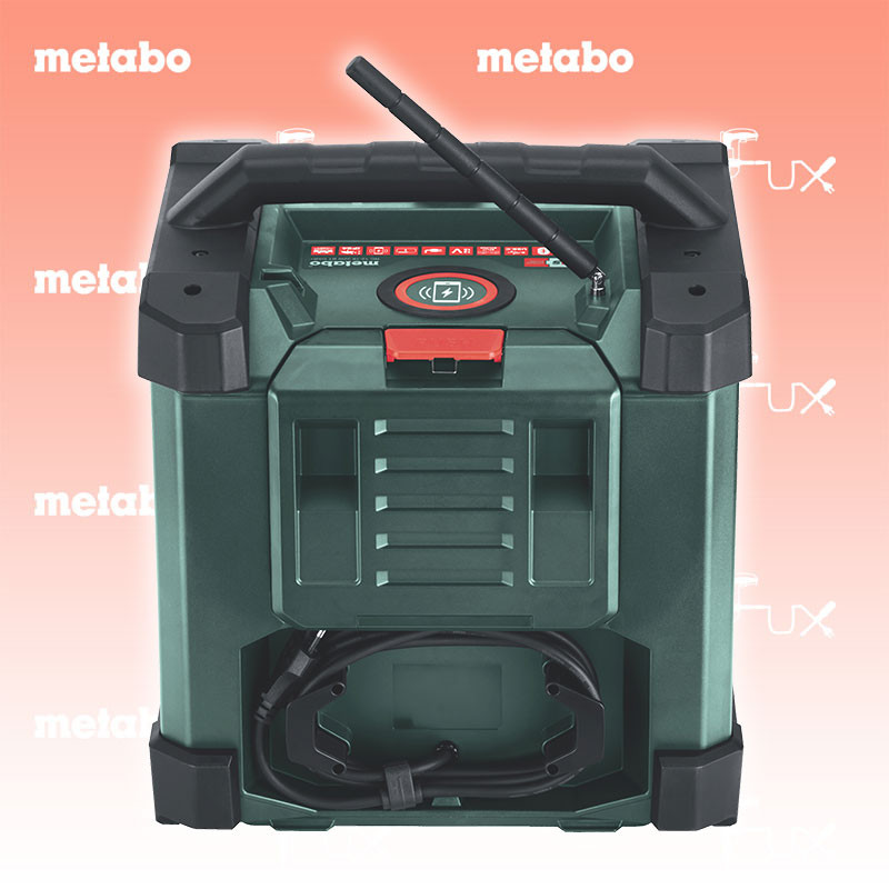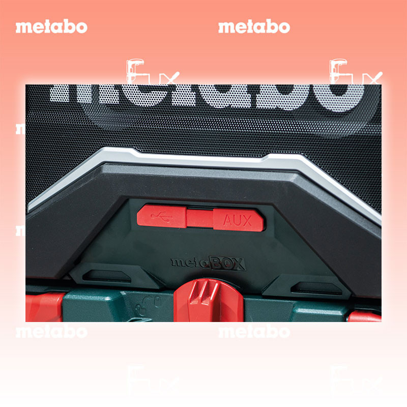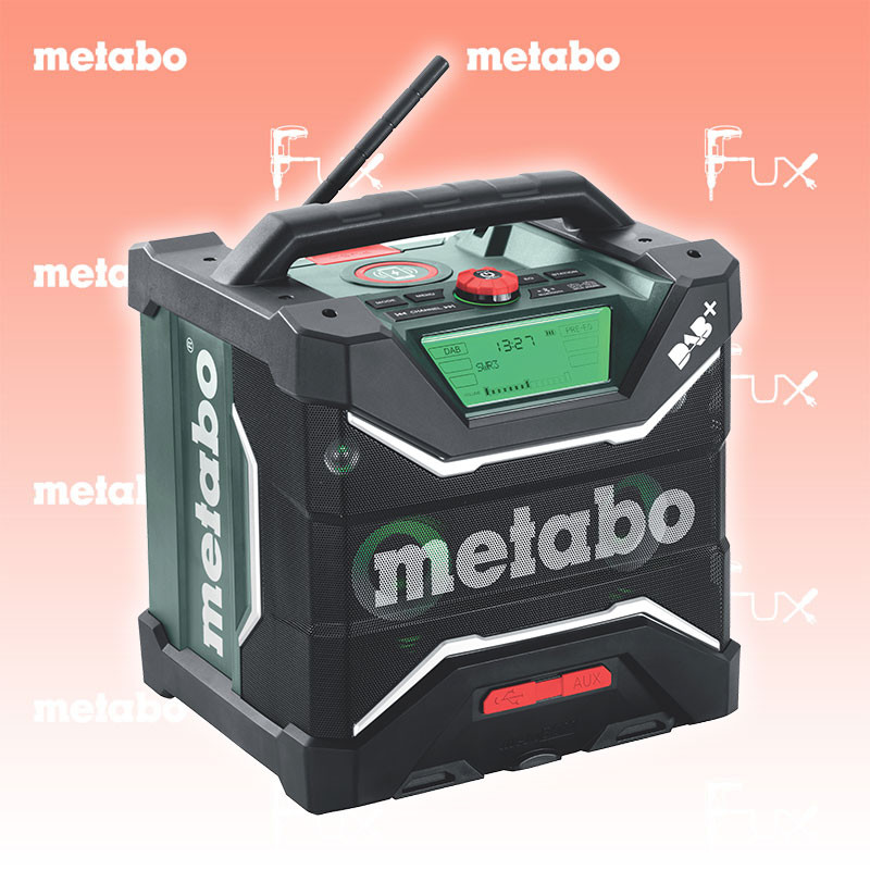 Das Ladenlokal bleibt vom 25. Dezember 2025 bis am 04. Januar 2026 geschlossen. Bestellungen und Lieferungen von Neugeräten werden trotz Ferienabwesenheit in gewohnter Fux-Manier entgegengenommen und ausgeliefert. Zu "Akku Radio" von Metabo FULL Service: 36 Monate zum Nulltarif für Sie! Weitere Infos zum FULL Service Dieses Produkt ist CAS kompatibel! Weitere Infos zu CAS Metabo RC 12-18 32W BT DAB+ Akku-Baustellenradio Bestell- und Artikelnummer: 600779180 Leistungsstarkes DAB+ Baustellenradio mit sattem Sound und integrierter Ladefunktion für Akkupacks und Smartphones Ladefunktion für Akkupacks im Netzbetrieb und für mobile Endgeräte mit USB-C-Kabel oder kabelloses Induktionsladen SplitSound: für ein erweitertes Sound-Volumen kann der Lautsprecher eines zweiten Radios synchron zugeschaltet werden Viele Sender dank DAB+ Radioempfang, zusätzlich analoger UKW (FM) Empfang - jeweils 8 Speicherplätze Mit Bluetooth zum drahtlosen Musikhören von Smartphone oder Tablet AUX-IN zum Anschluss von kabelgebundenen Musikquellen Betrieb mit allen Metabo Schiebesitz-Akkupacks von 12 bis 18 Volt oder Netzbetrieb möglich Robustes Kunststoffgehäuse mit Schutzklasse IP 54 - spritzwassergeschützt, staubfest, stoßfest Stapel- und koppelbar auf jeder metaBOX, bis zu 40 kg können getragen werden Integrierter Flaschenöffner für den durstigen Radiohörer Viele Marken, ein Akku-System: Dieses Produkt ist kombinierbar mit allen 18V-Akkupacks und Ladegeräten der CAS Marken: www.cordless-alliance-system.com Ergattere dir einen zweiten Akku bei der Registration auf metabo.ch Alle Produkte dieser Aktion anzeigen OHNE AKKUS UND LADEGERÄT Technische Daten Akkuspannung 12 - 18 V 18 V / 2.0 Ah 4 h / 18 V 5.2 Ah 10.5 h / 10 Ah 22 h ( ca. ) Radiofrequenz DAB+ 174 - 240 MHz Radiofrequenz FM 87,5 - 108 MHz Gewicht ohne Akkupack 6,8 kg Gewicht mit Akkupack 7,2 kg Standard-Ausrüstung USB-C Kabel 2 Batterien (AAA) für Uhrzeit- und Senderspeicher ohne Akkupack Zubehör Listenpreis CHF 409.00 Fuxpreis CHF 348.00 inkl. 8.1% MwSt, inkl vRG Frankolieferung Kein Grauimport! Produkt bestellen 1 Stück 2 Stück 3 Stück 4 Stück 5 Stück 6 Stück 7 Stück 8 Stück 9 Stück 10 Stück Alle Angaben ohne Gewähr und solange Vorrat reicht!Wiederverkäufer werden?Lehrlingsrabatt? Produkt als PDFVideo LiHD 1Video LiHD 2 AKTION 15%
