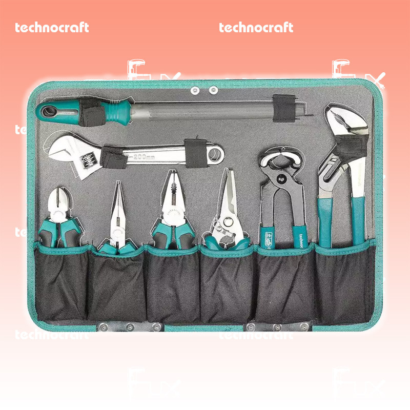 Die Ausstattung umfasst diverse Werkzeuge wie Hammer, Ratschen, Stecknüsse in den Grössen 1/4 und 1/2 Zoll, Schraubendreher und Zangen.