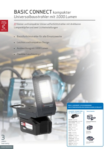 AKKU-SICHERHEITSSYSTEM%u2022Automatischer Schutz vor Tiefentladung %u2022%u00dcberlastungsschutz%u2022Temperatur%u00fcberwachung%u2022Gepr%u00fcft durch T%u00dcV RheinlandQR-Code scannen, umden Pr%u00fcfbericht von T%u00dcV Rheinland zu lesen Das Sicherheitssystem verf%u00fcgt %u00fcber einen automatischen Entladungsschutz, einen %u00dcberlastungsschutz und eine Temperatur%u00fcberwachung, sodass Sie Ihren 18/20-V-Akku immer wieder verwenden k%u00f6nnen, ohne dass er besch%u00e4digt wird.Die SCANGRIP Steckverbinder sind vom T%u00dcV Rheinland gepr%u00fcft. Jeder CONNECTOR wird unter separaten Artikelnummern verkauft und ist individuell f%u00fcr die einzelnen Elektrowerkzeugmarken ausgelegt.// SCANGRIP hat f%u00fcr jede einzelne Elektrowerkzeugmarke einen speziellen CONNECTOR entwickelt, der zu 18/20-V-Akkupacks passt. Montieren Sie einfach den CONNECTOR an die Arbeitsleuchte, schlie%u00dfen Sie Ihren Akku an und schon sind Sie einsatzbereit.SMART CONNECTORJUST CONNECTVerwenden Sie den zu Ihrem 18/20-V-Akkupack passenden Steckverbinder 6