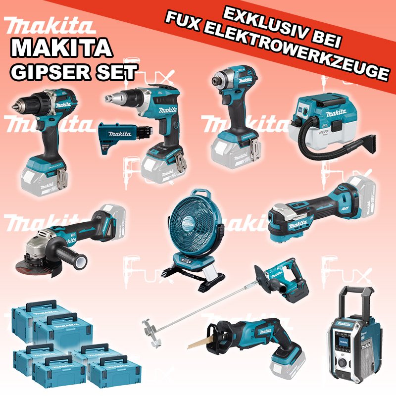 Zu "Gipser Set" von Makita FUX SPECIAL EXKLUSIV BEI FUX Makita Gipser Set 15 SOLO Bestell- und Artikelnummer: maGipser Set 15 SOLO DDF484ZJ Akku-BohrschrauberAkkuspannung 18 V Drehzahlen 0-500 / 0-2000 U/min Drehmoment hart / weich 54 / 30 Nm Gewicht 1.5 kgInfos DFS452ZJ Akku-Trockenbau-SchrauberAkkuspannung 18 V Drehzahl 0-4000 U/min Werkzeugaufnahme 1/4" (Innensechskant) Gewicht 1.8 kgInfos DUT130Z Akku-RührgerätAkkuspannung 18 V Max. Ø Rührwerk 165 mm Max. Ausgangsleistung 650 Watt Gewicht 2.8 kgInfos DTD173Z Akku-SchlagschrauberAkkuspannung 18 V Anziehdrehmoment 20 / 50 / 170 / 180 Nm Werkzeugaufnahme 1/4" (Innensechskant) Gewicht inkl. Akku 1.2 - 1.5 kgInfos DVC750LZX1 Akku-StaubsaugerAkkuspannung 18 V Kompakt, handlich und leicht zum transportieren 2 Geschwindigkeiten Gewicht inkl. Akku 4.6 kgInfos 2 x DGA506ZJ Akku-WinkelschleiferAkkuspannung 18 V Drehzahl 9000 U / min Scheibendurchmesser 125 mm Gewicht 2,5 kgInfos 2 x DMR115 Akku Radio DAB / DAB+ / FM / Bluetooth®Li-Ion 10.8 - 18V oder Netzbetrieb DAB / DAB+ / FM / mit Bluetooth® Robuste, Schlag, Feuchtigkeit geschützt Gewicht inkl. Akku (EPTA): 4,8 - 5,5 kgInfos DJR183Z Akku-SäbelsägeAkkuspannung 18 V Hubzahl 0-3000 / min Schnittleistung Holz 50 mm / Rohre 50 mm Gewicht 1.6 kgInfos MAKPAC Gr. 3Produktabmessung (L x B x H) 377 x 277 x 176 mm Infos Einsatz für DTM52 Einsatz für DTM52 Makpac Koffer Typ C (821551-8) Infos 2 x MAKPAC Gr. 2Produktabmessung (L x B x H) 395 x 295 x 163 mm Infos Einsatz für diverse Schlagschrauber Einsatz für DDF083, DDF483, DHP483, DTD134, DTD137, DTD146, DTD148, DTD152, DTD153, DTD154, DTD155, DTD170, DTD171, DTP131, DTP141, DTS130, DTS131, DTS141, DTW180, DTW181, DTW250, DTW251, DTW284, DTW285Infos Einsatz für DJR183 Einsatz für DJR183 Makpac Koffer Typ B (821550-0)Infos MagazinschraubenvorsatzMacht aus Schnellbauschraubern in wenigen Sekunden MagazinschrauberInfos OHNE AKKUS UND LADEGERÄT Standard-Ausrüstung In diesem Set enthalten: DDF484ZJ Akku-Bohrschrauber DFS452ZJ Akku-Trockenbau-Schrauber DUT130Z Akku-Rührgerät DTD173Z Akku-Schlagschrauber DVC750LZX1 Akku-Staubsauger 2 x DGA506ZJ Akku-Winkelschleifer 2 x DMR115 Akku Radio DAB / DAB+ / FM / Bluetooth® DJR183Z Akku-Säbelsäge MAKPAC Gr. 3 Einsatz für DTM52 2 x MAKPAC Gr. 2 Einsatz für diverse Schlagschrauber Einsatz für DJR183 Magazinschraubenvorsatz Geliefert im Koffer Zubehör Listenpreis CHF 2'925.00 Fuxpreis CHF 1'982.00 inkl. 8.1% MwSt, inkl vRG Versand CHF 20.00 Kein Grauimport! Produkt bestellen 1 Stück 2 Stück 3 Stück 4 Stück 5 Stück 6 Stück 7 Stück 8 Stück 9 Stück 10 Stück Option: Makita BL 1860 B ( Li-lon Akku ) für CHF 95.- statt CHF 124.-Infos Alle Angaben ohne Gewähr und solange Vorrat reicht!Wiederverkäufer werden? Produkt als PDF NEUHEITAKTION 32%